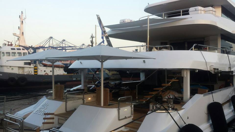 Umbrellas and Sun-Sails @ 'My Eden' mega-yacht