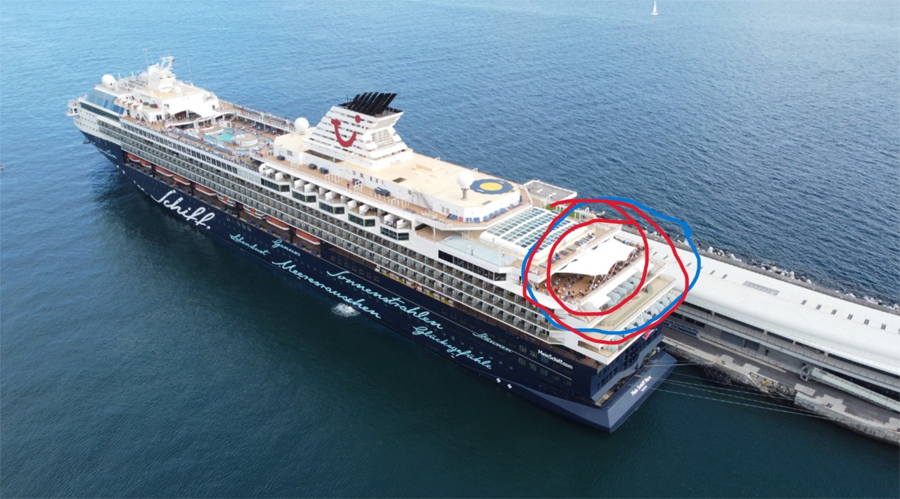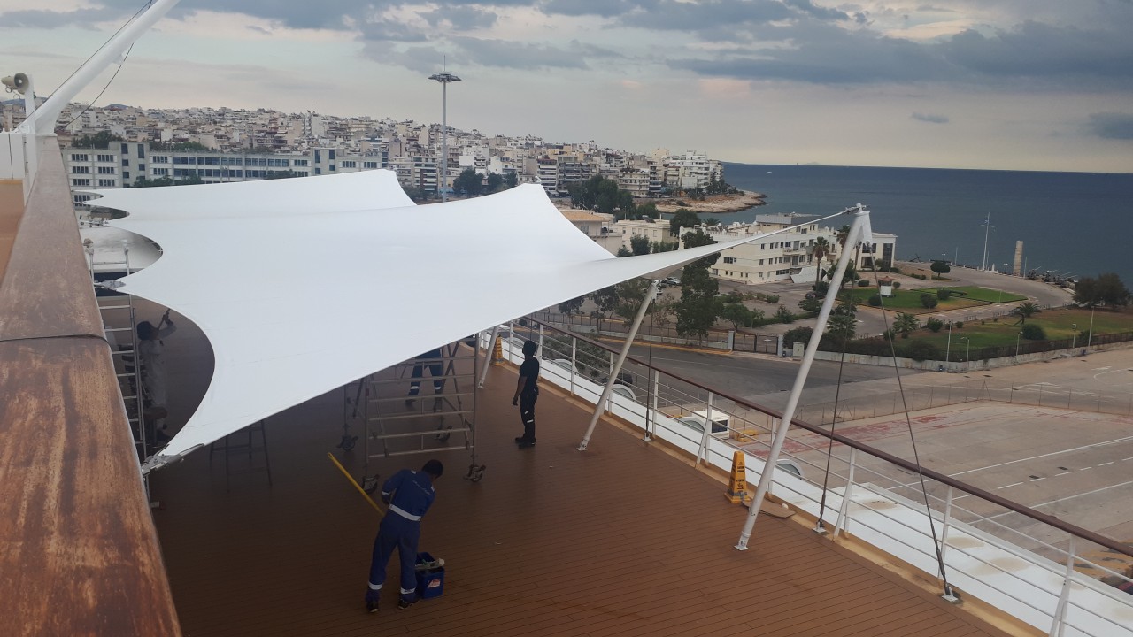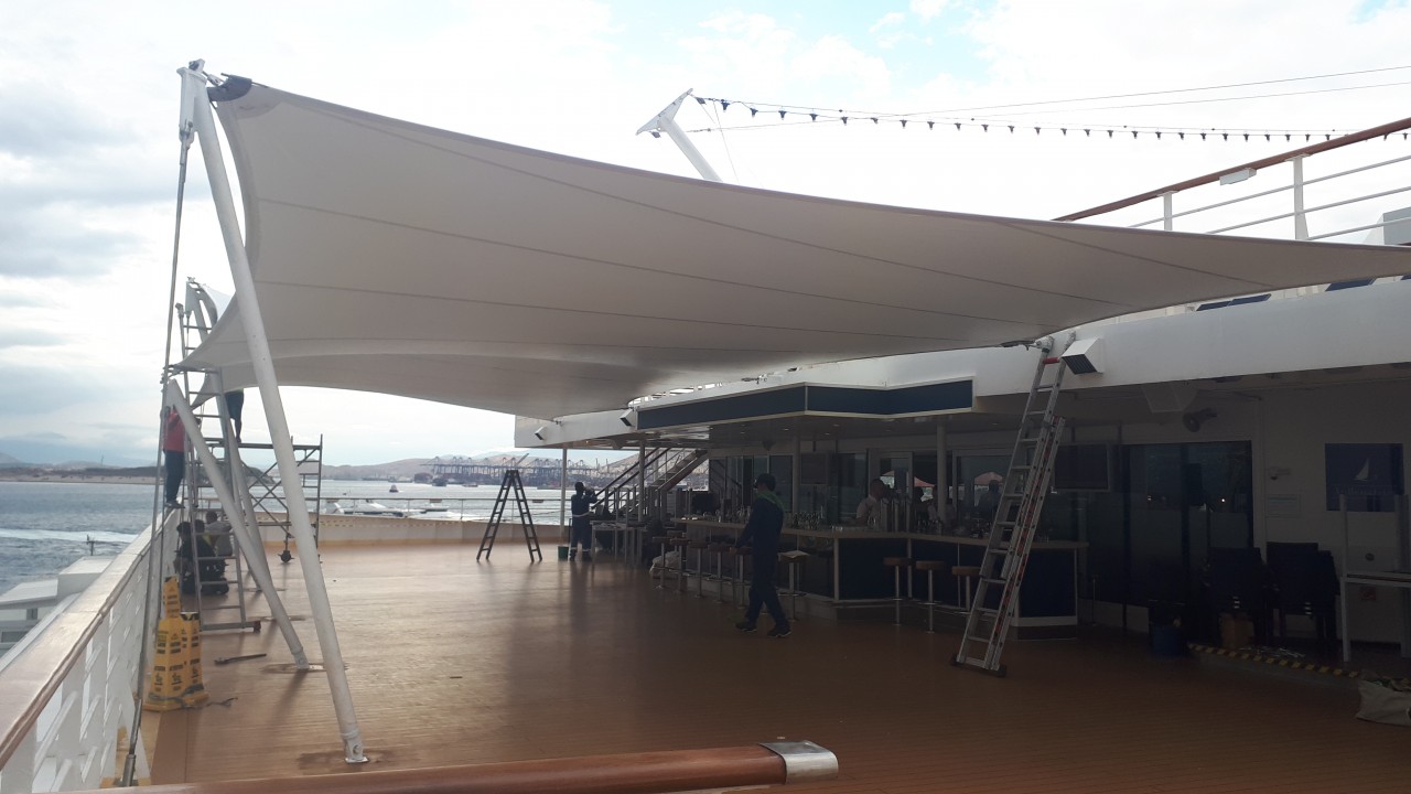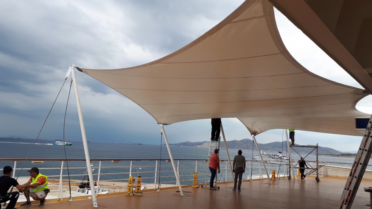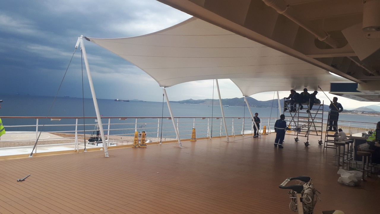 Tensile membrane structure @ Mein Schiff Herz cruise ship of TUI
