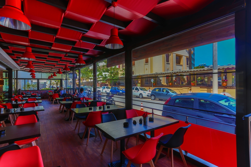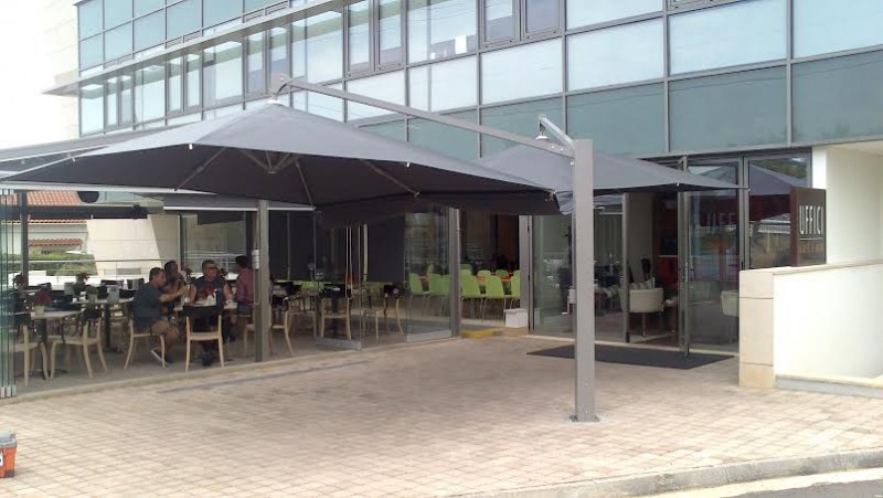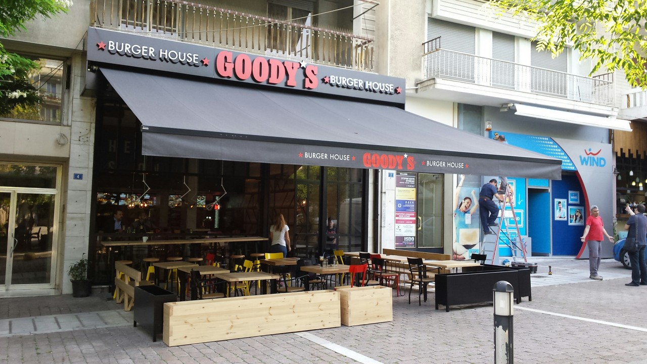 Motorised awining with double-arms @ Goody's burger house, Athens