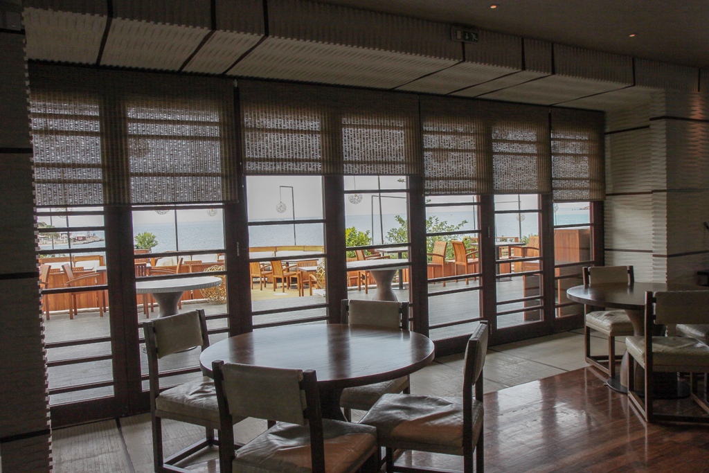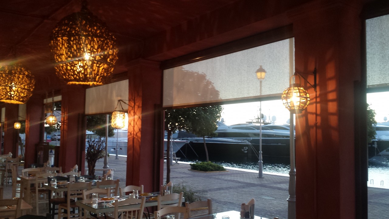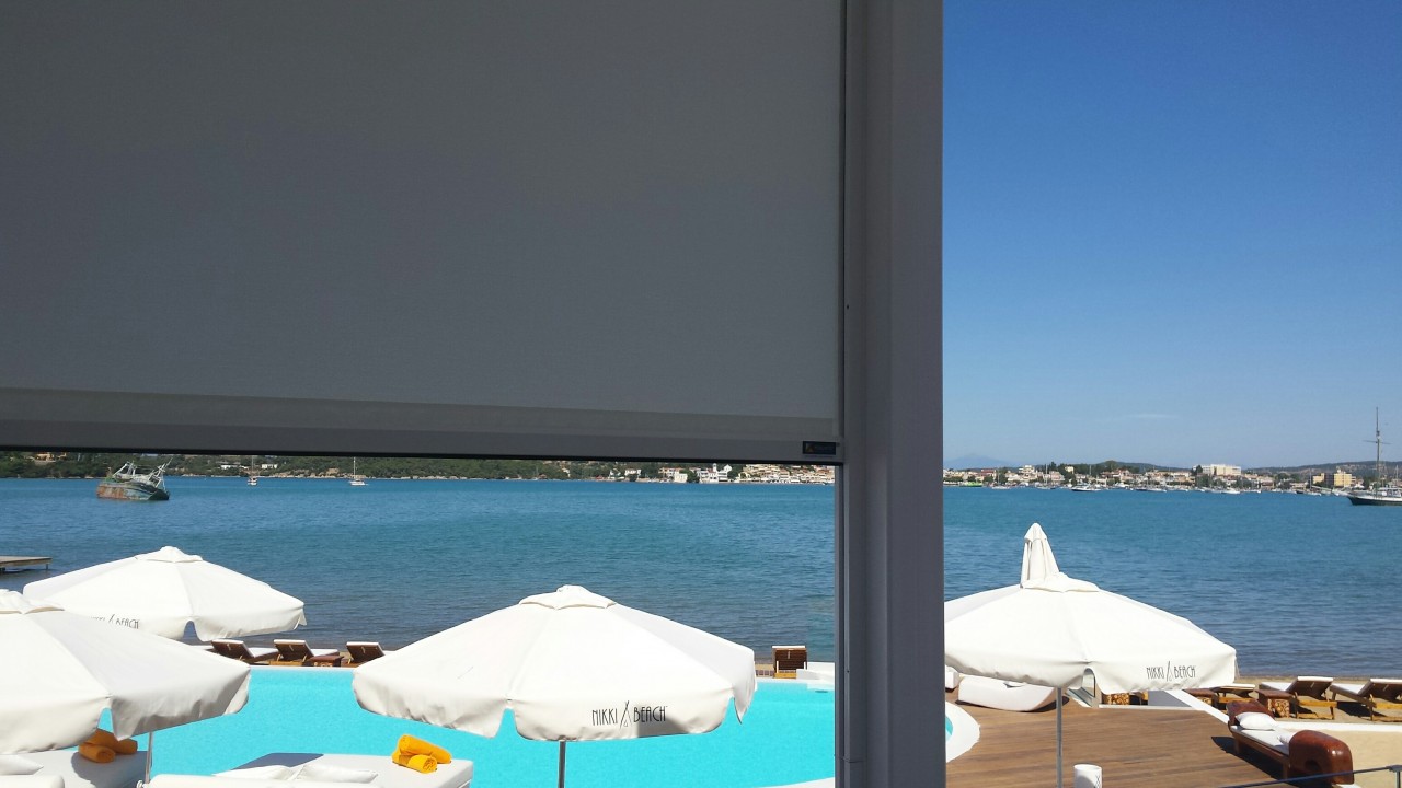 Natural fabric roller blinds @ Matsuhisa, Four Seasons, Vouliagmeni