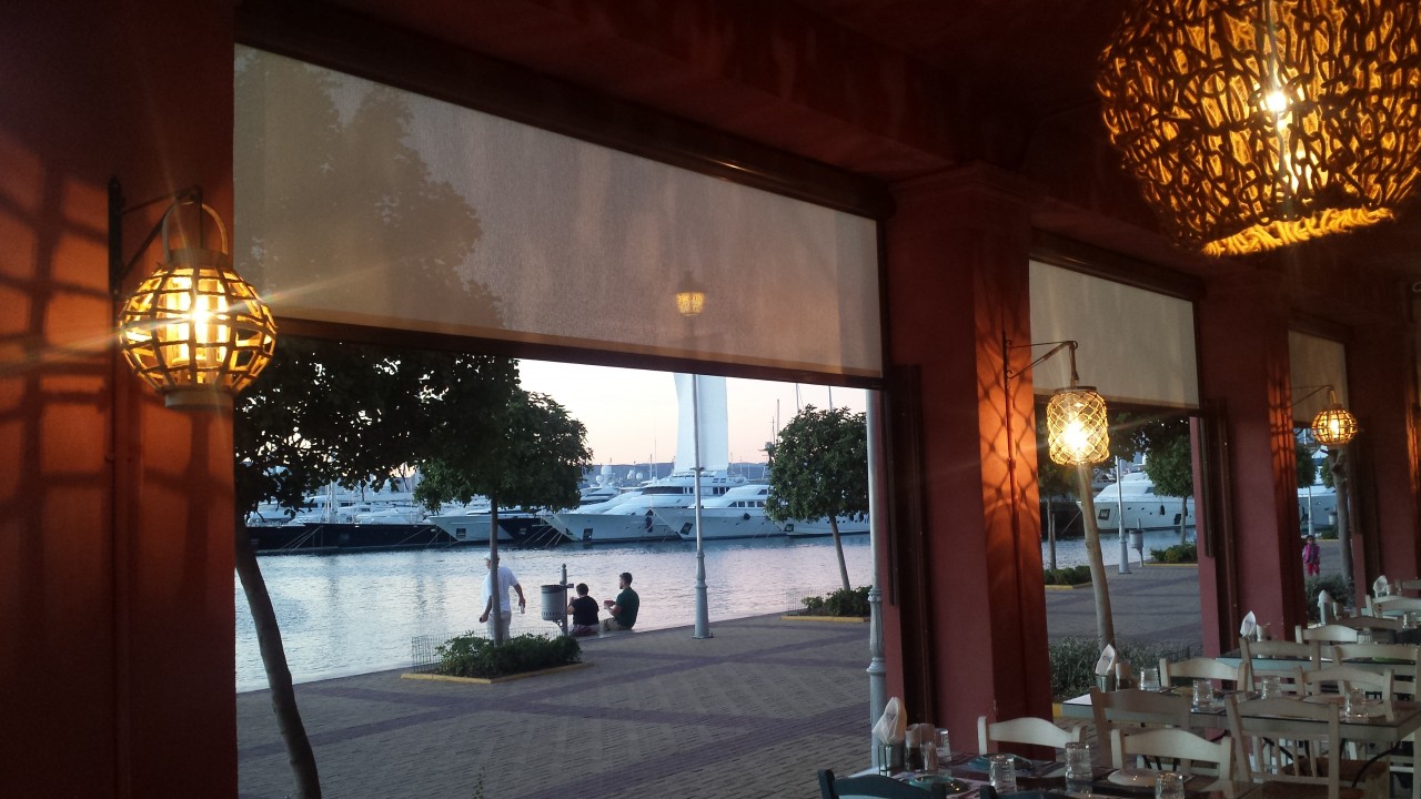 Crystal-PVC motorised roofs @ Oz-Bay Cocktail Bar, Chios