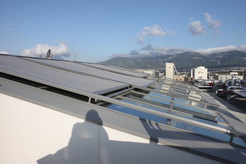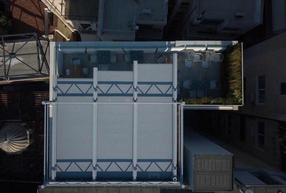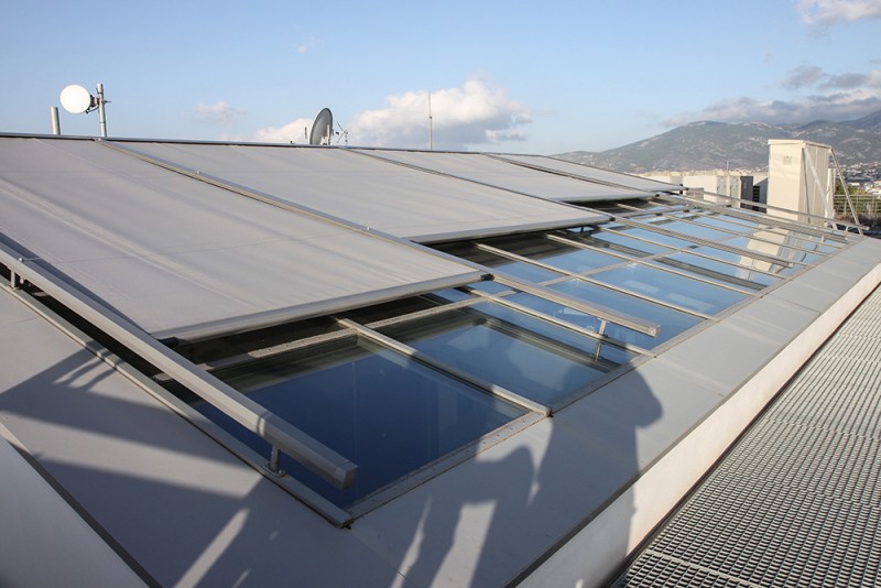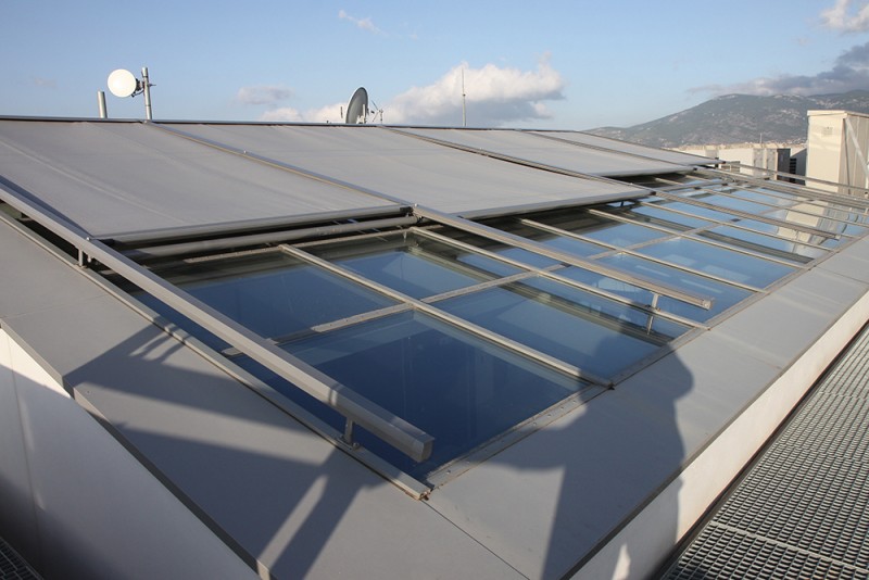 Morotised folding roof @ ΟΠΑΠ Building, roof-garden, Athens