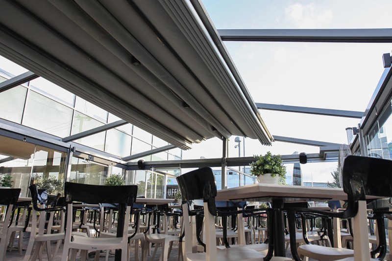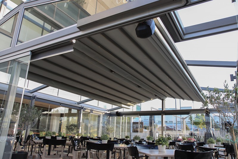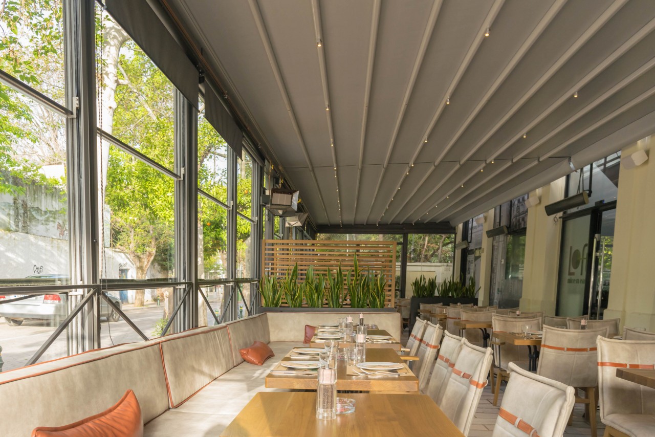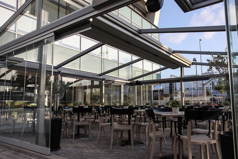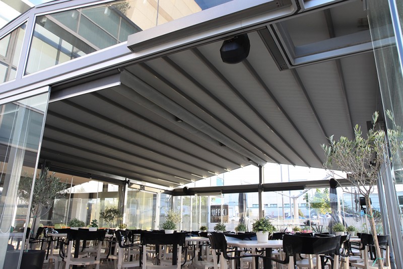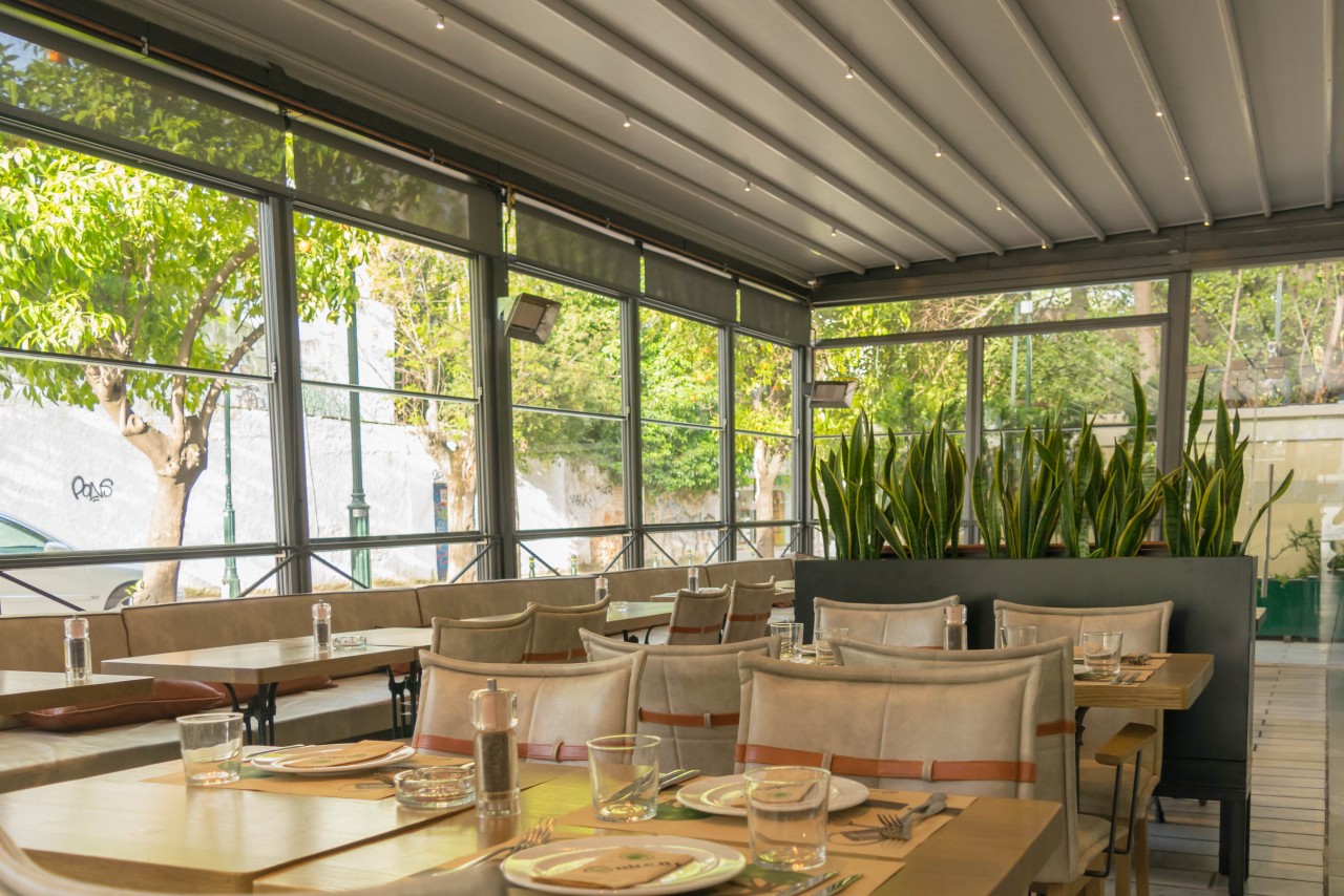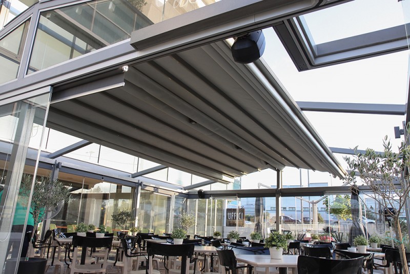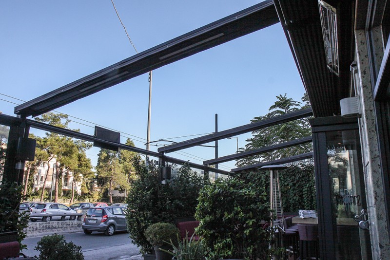 Motorised-roof pergola with side closings @ Bistrot 151, Thessaloniki