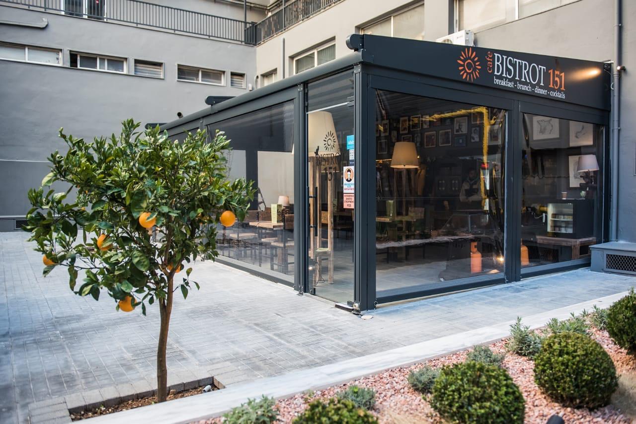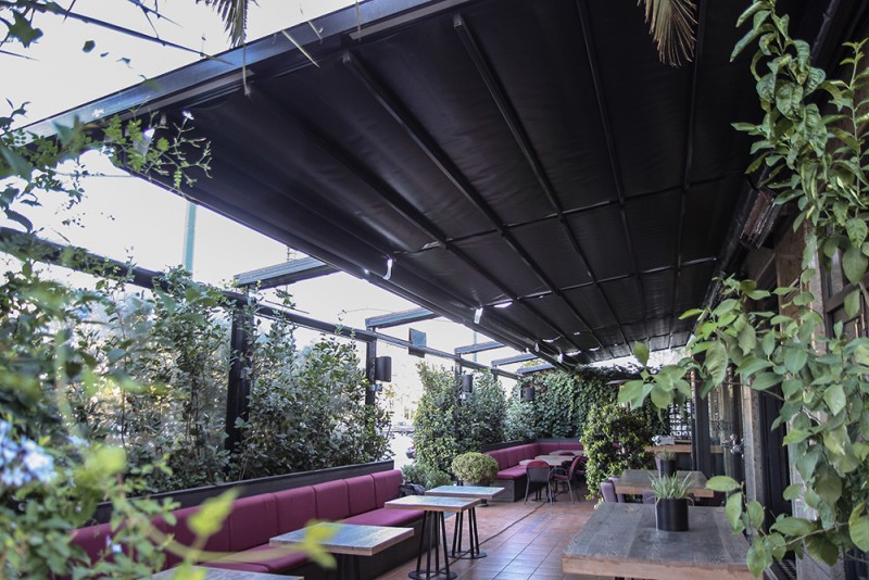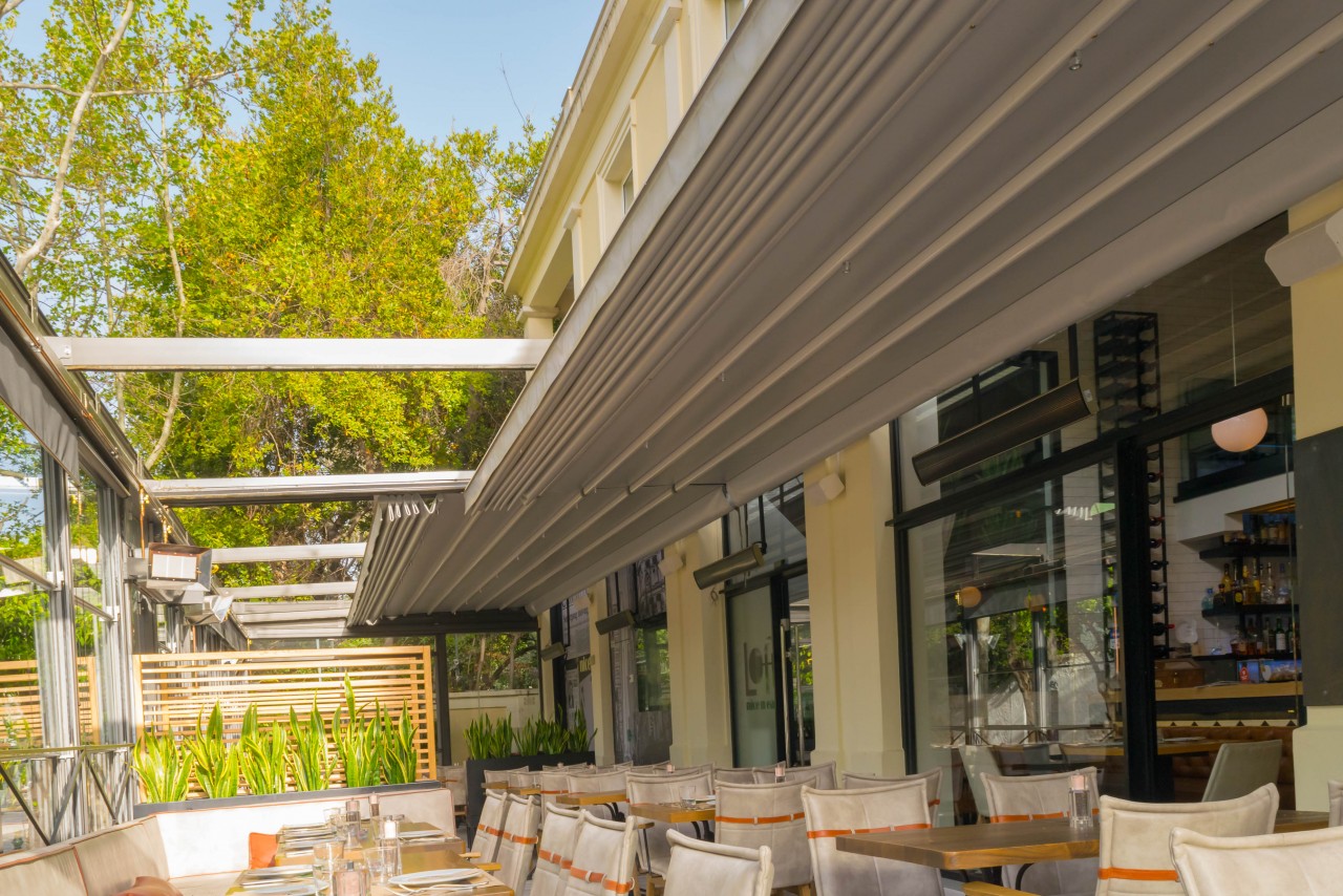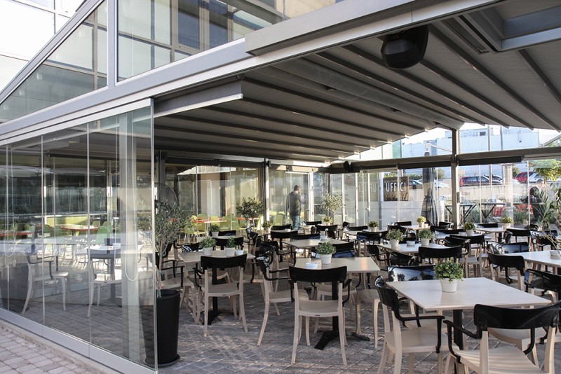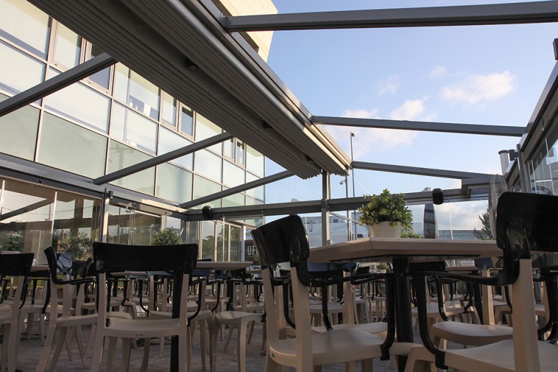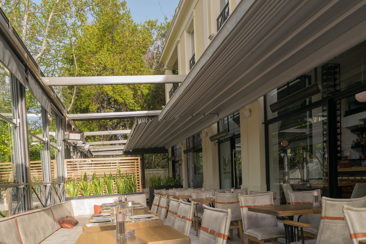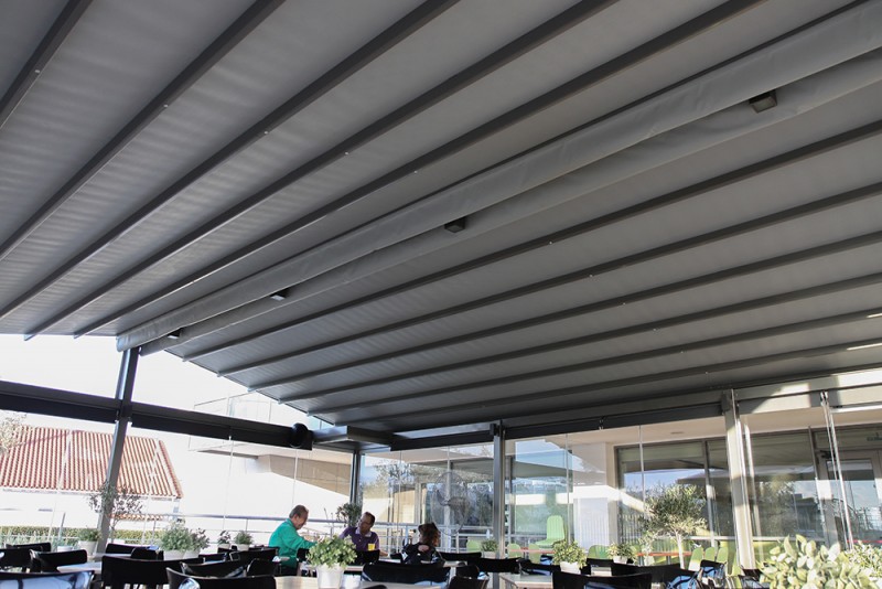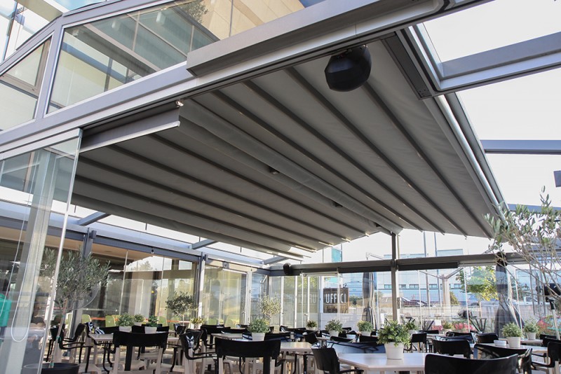 Motorised-roof pergola with side closings @ Bistrot 151, Thessaloniki