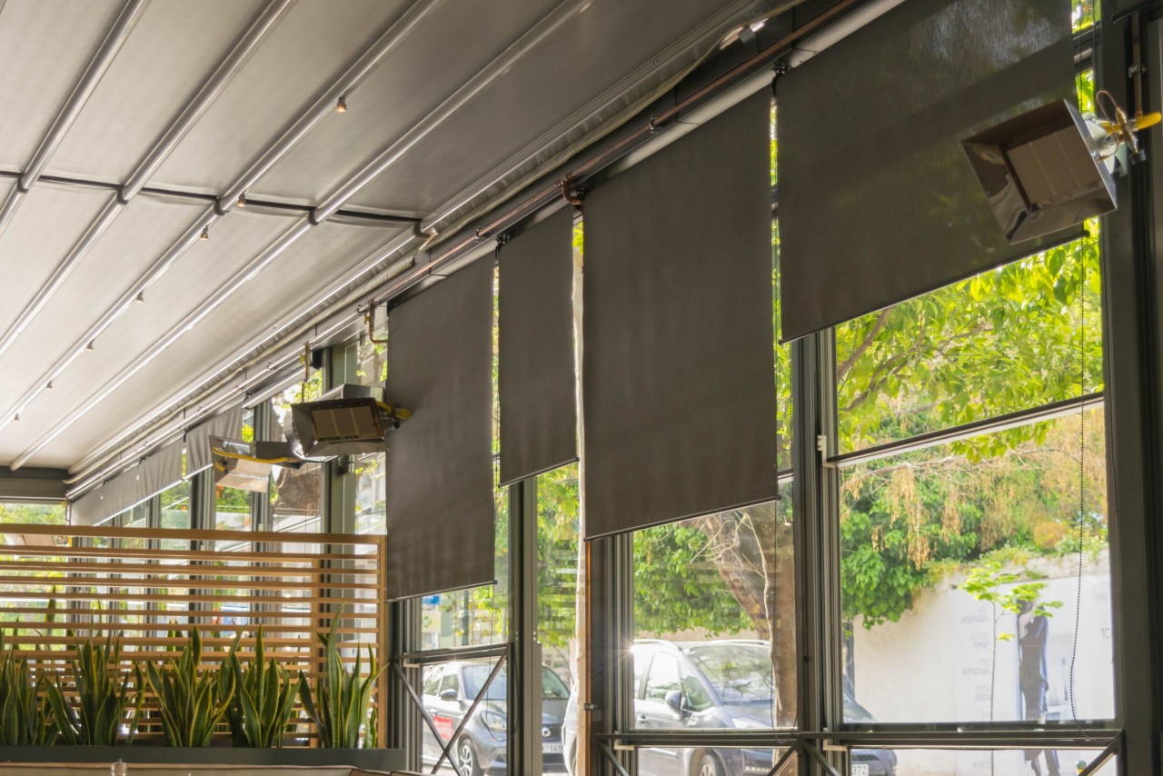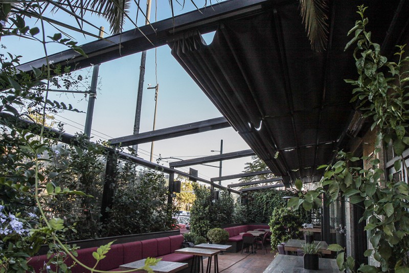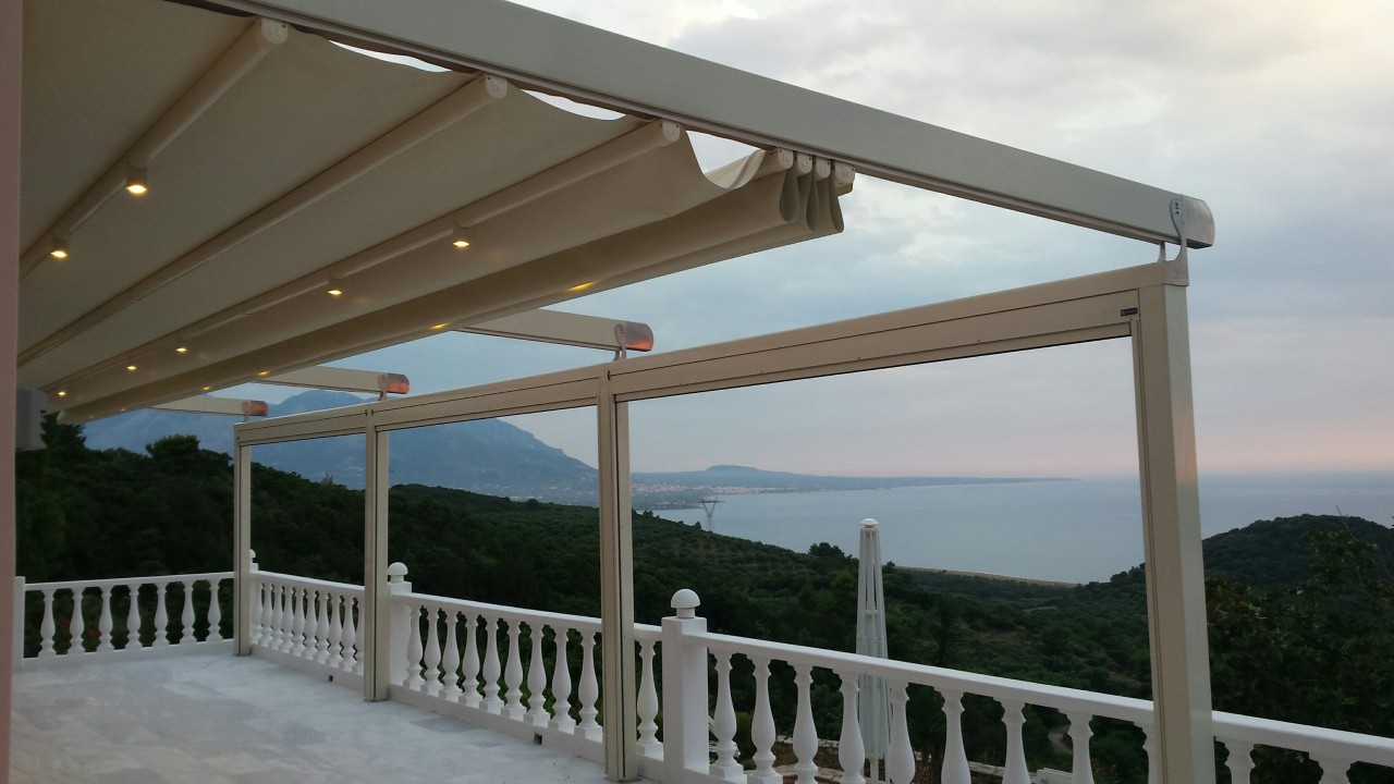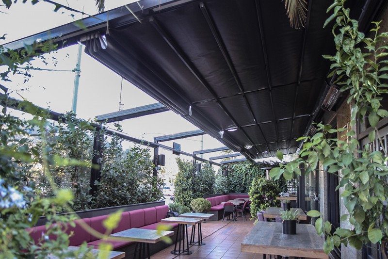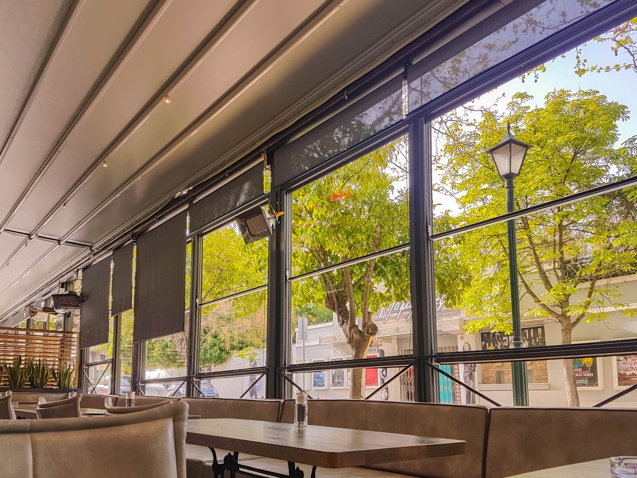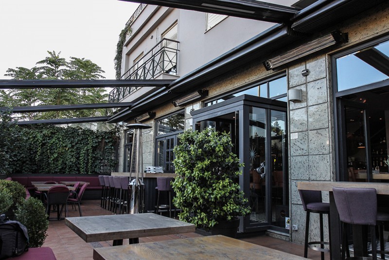 Motorised-roof pergola with side closings @ Bistrot 151, Thessaloniki
