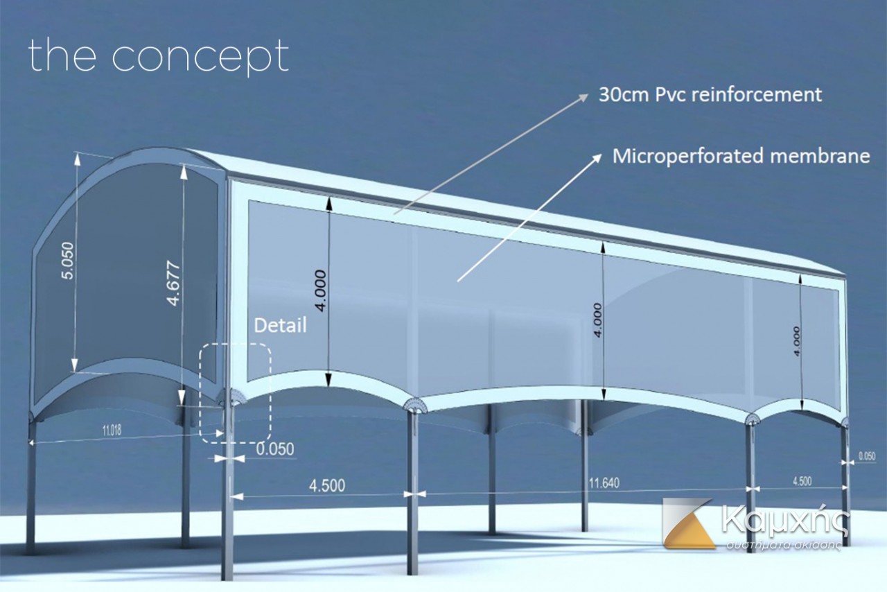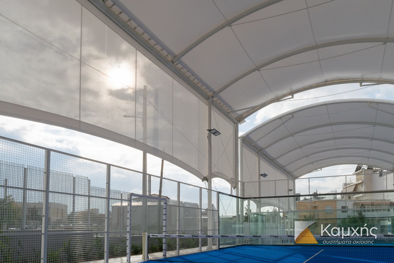Tensile membranes for side closings @ Vibora Padel courts, Athens